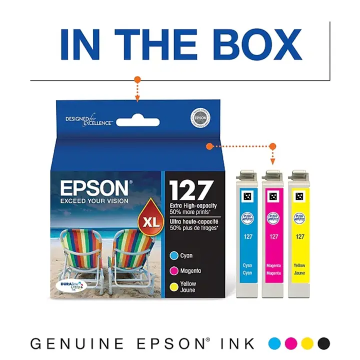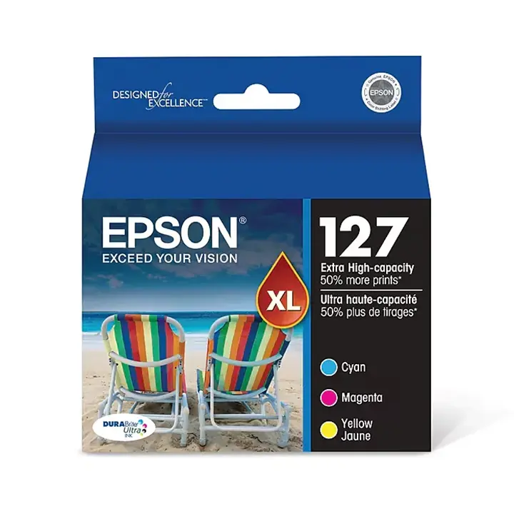 Epson T127 Cyan/Magenta/Yellow Extra High Yield Ink Cartridge, 3/Pack